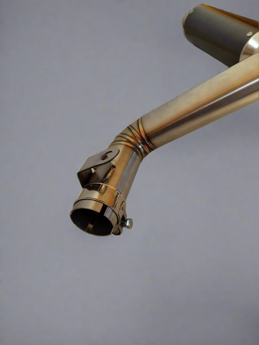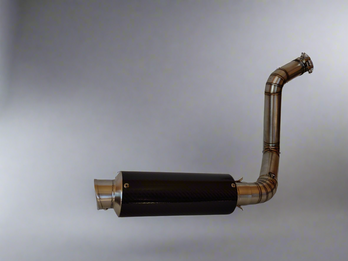 Глушитель и соединения изготовлены из высококачественной нержавеющей стали. Глушитель покрыт углеродным волокном и имеет омологацию E.